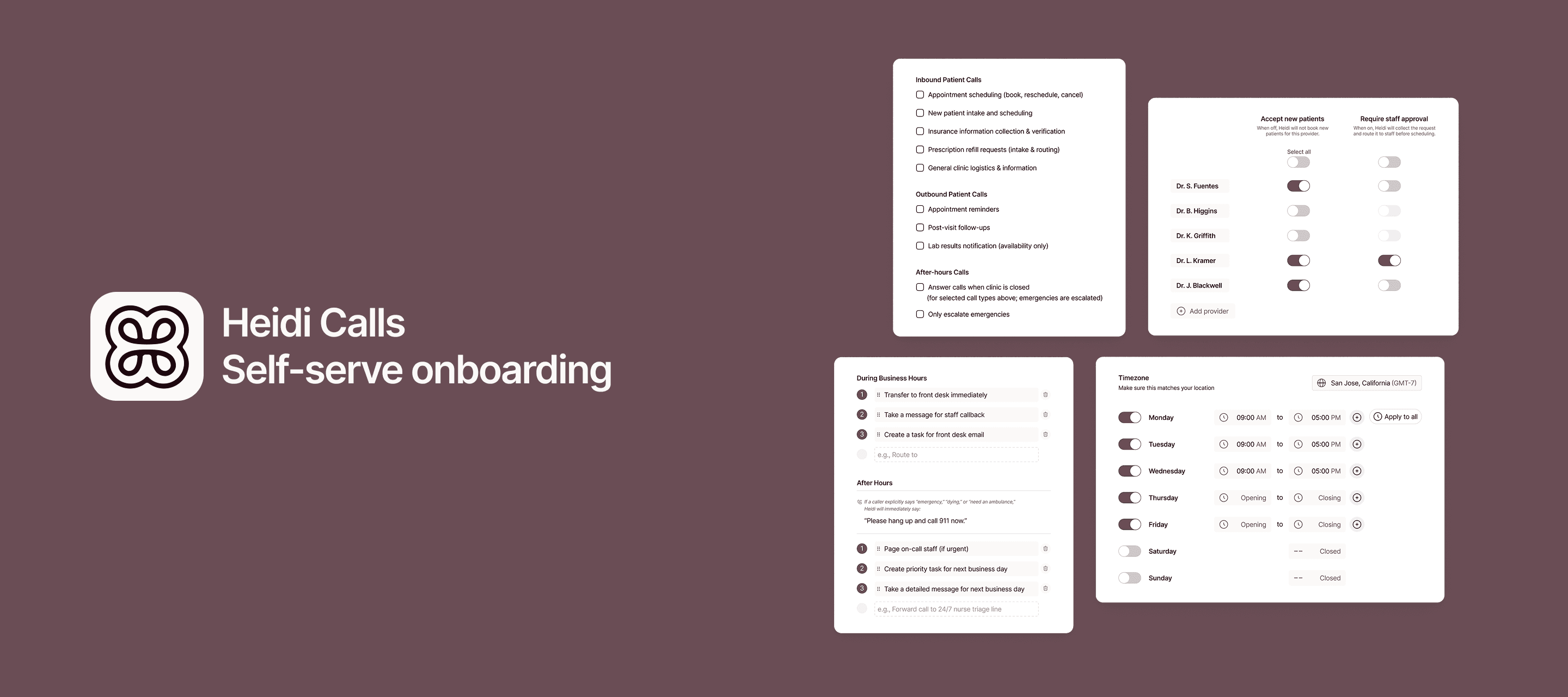 Designing a scalable call setup to help clinics set up Heidi Calls around their operational needs.